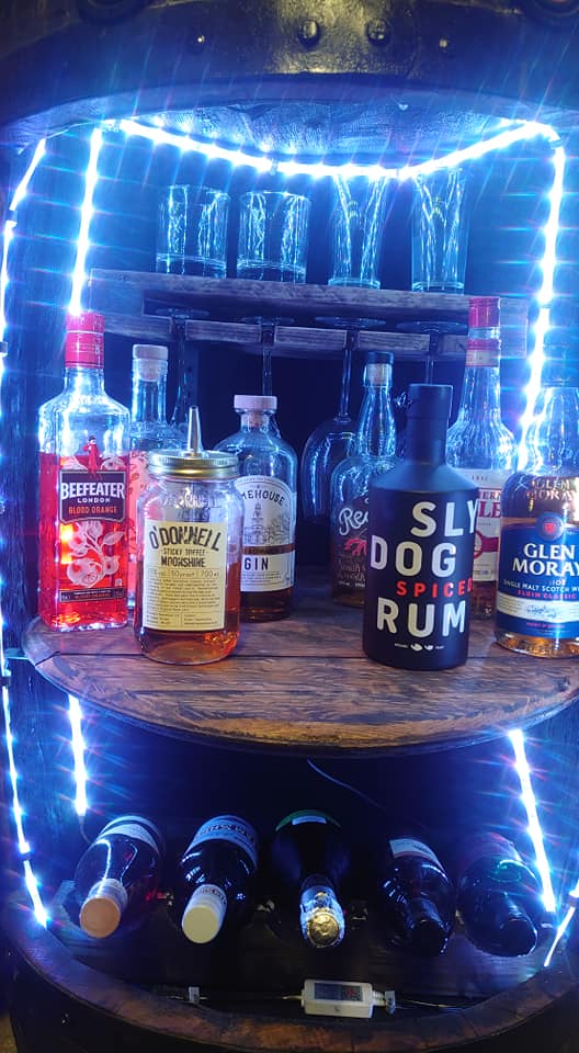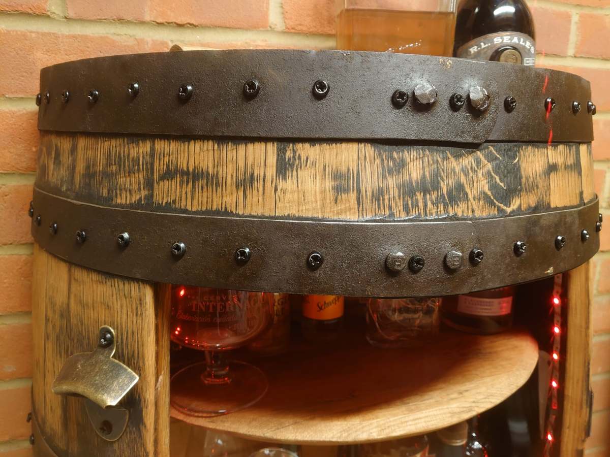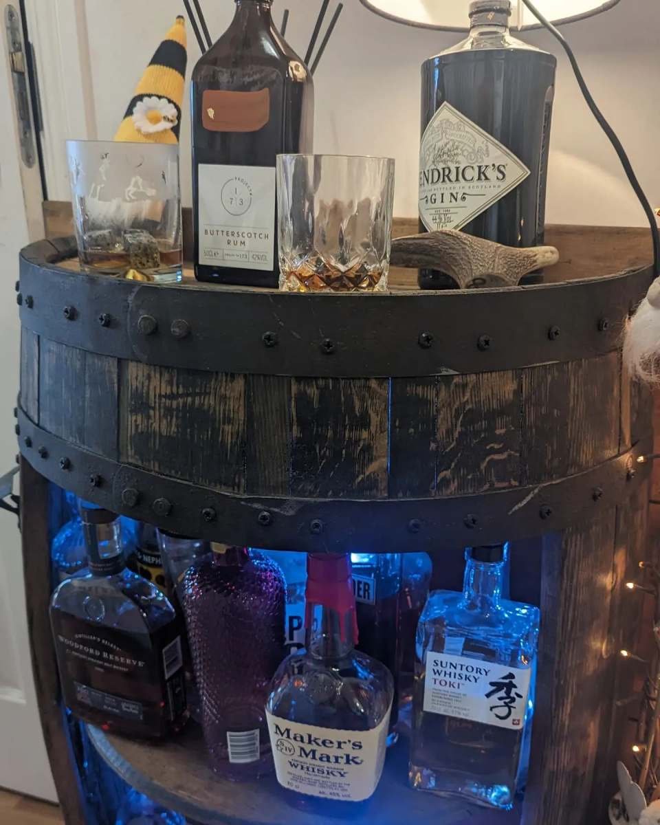 Bring a piece of distillery history into your home and enjoy the perfect blend of tradition and innovation with this reclaimed whisky barrel home bar.