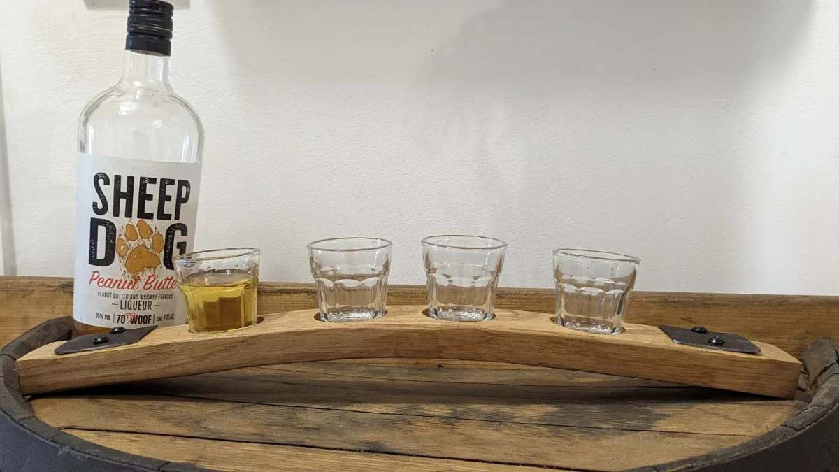 Shot Glasses on a Oak Whiskey Barrel Stave Holder