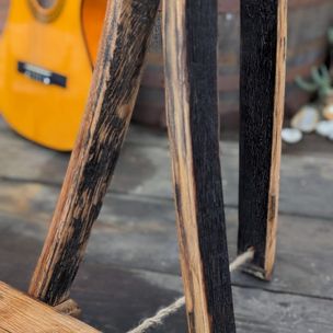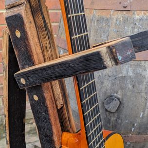 Introducing the Vintage Oak Guitar Stand, a piece that beautifully combines function, artistry, and history. Each build is a one-of-a-kind that is meticulously handcrafted from oak wood reclaimed from an authentic, aged whisky barrel. Infuse your space with a touch of rustic charm and sophistication while showcasing your prized guitar.