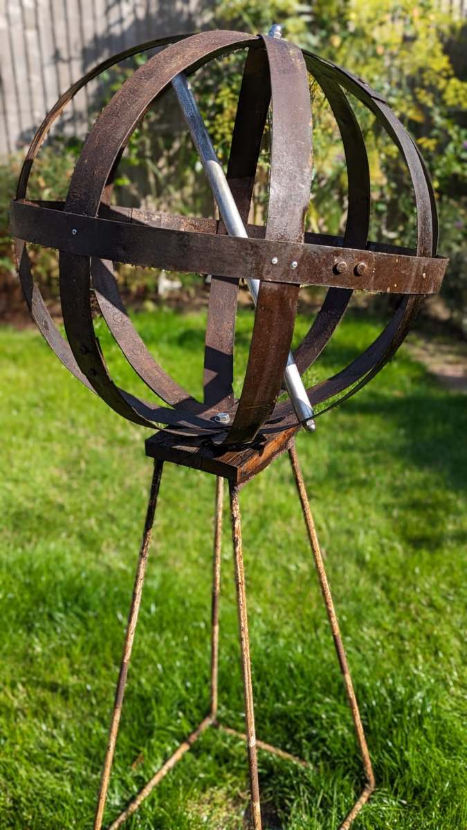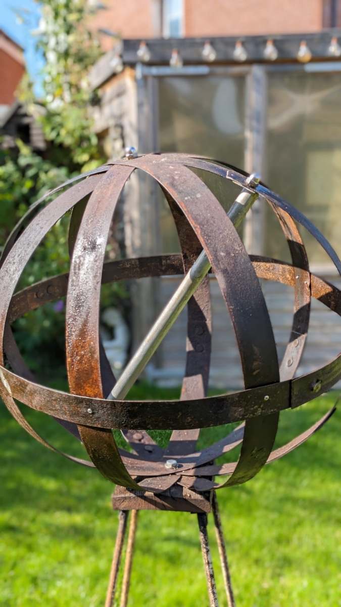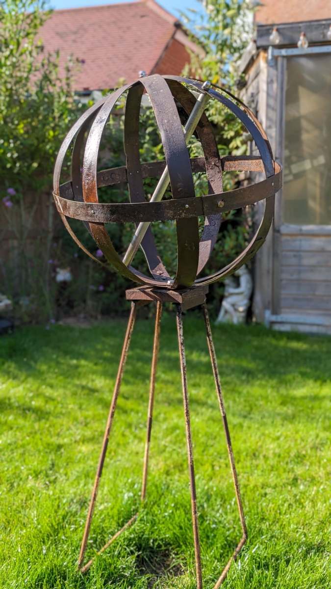 Introducing our unique garden orb, a stunning piece of art that brings both elegance and sustainability to any outdoor space. This one-of-a-kind creation is crafted entirely from 100% reclaimed materials, making it not just a beautiful addition to your garden but also an environmentally friendly choice.